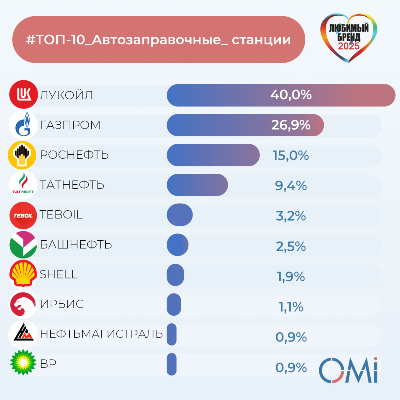 Категория показывает ежегодную стабильность. Первые семь мест десятки без изменений с предыдущего года: Лукойл, Газпромнефть, Роснефть, Татнефть, Teboil, Башнефть и SHELL (соответственно).