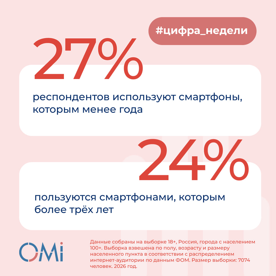 Почти половина респондентов используют смартфон старше 2 лет. При этом в России средний цикл обновления устройств традиционно короче (1,5–2 года).