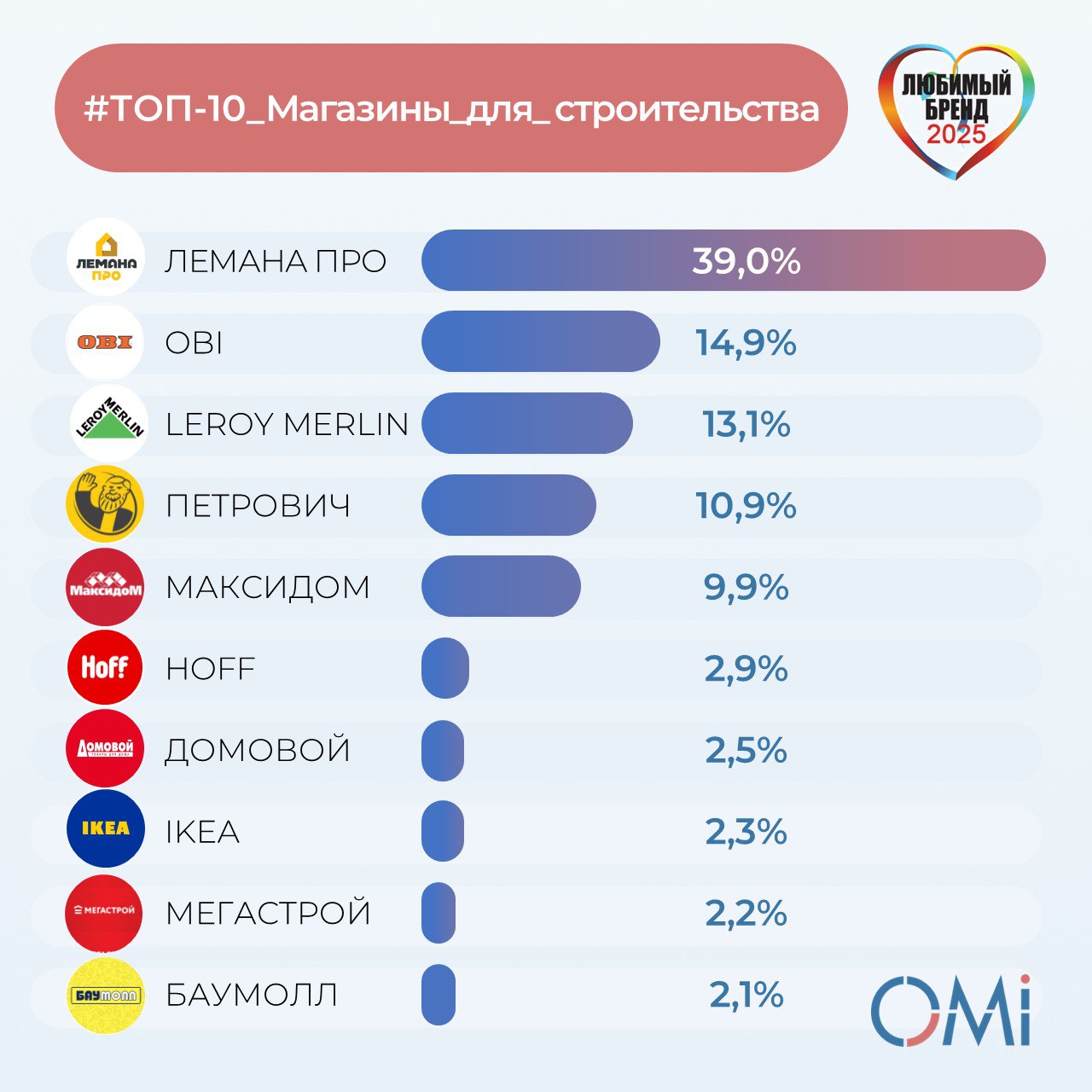 На первом месте с 2015 года уверенно расположился бренд «Лема́на ПРО» (бывший Leroy Merlin).